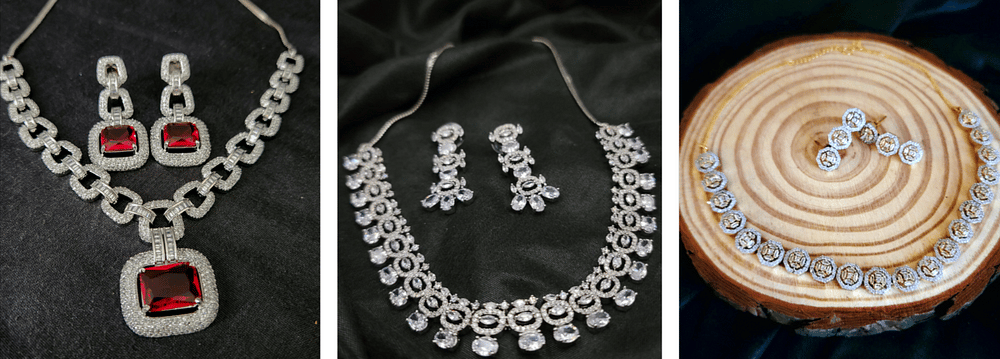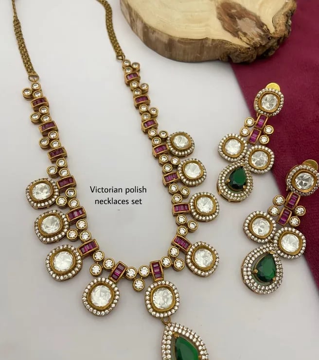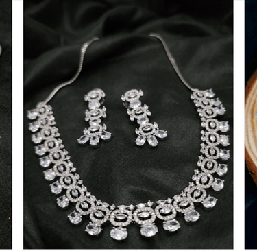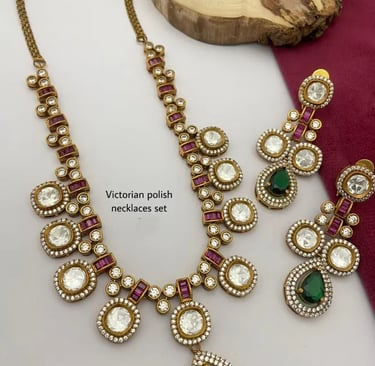 From minimal chains to ornate Indian necklace sets, we offer a wide variety that blends tradition with modern aesthetics. Each set is thoughtfully matched with earrings for a complete look.